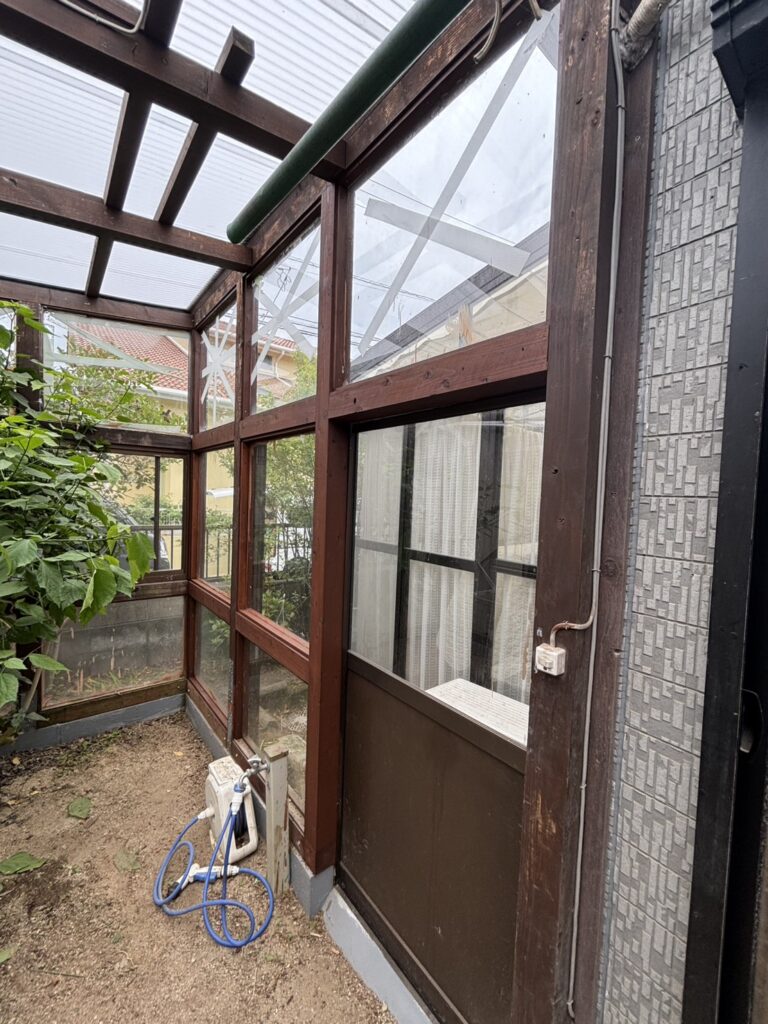 サンルームの腐食した柱の入れ替えや、タキロンの張替え工事を行いました!